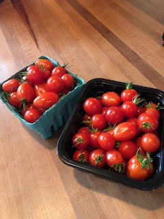 Pictured above left to right: Summer harvests of Orange King and Roma tomatoes, Gardeners Sweetheart, Italian Heirloom.